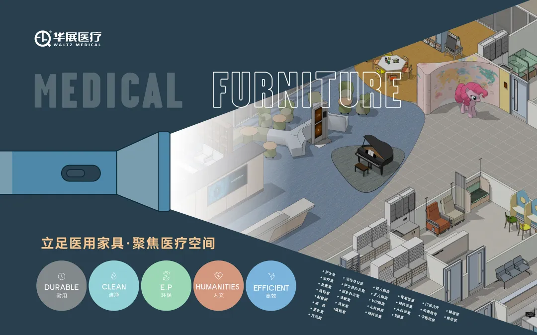 华展医疗依托先进的设计理念、精湛的工艺技术、以及丰富的行业经验,致力于为医疗行业提供全方位、定制化的医疗家具一体化整体解决方案。从病房家具、手术室装备到公共区域设施,我们精心策划、设计并制造符合现代医疗环境需求的各类家具产品。同时,我们注重产品的实用性与人性化设计,力求为医护人员创造更加高效、舒适的工作环境,为患者带来更加温馨、便捷的就医体验。华展医疗积极为医院建设贡献力量,助力实现国民健康目标,为推动医疗卫生事业的发展做出自己的积极贡献。